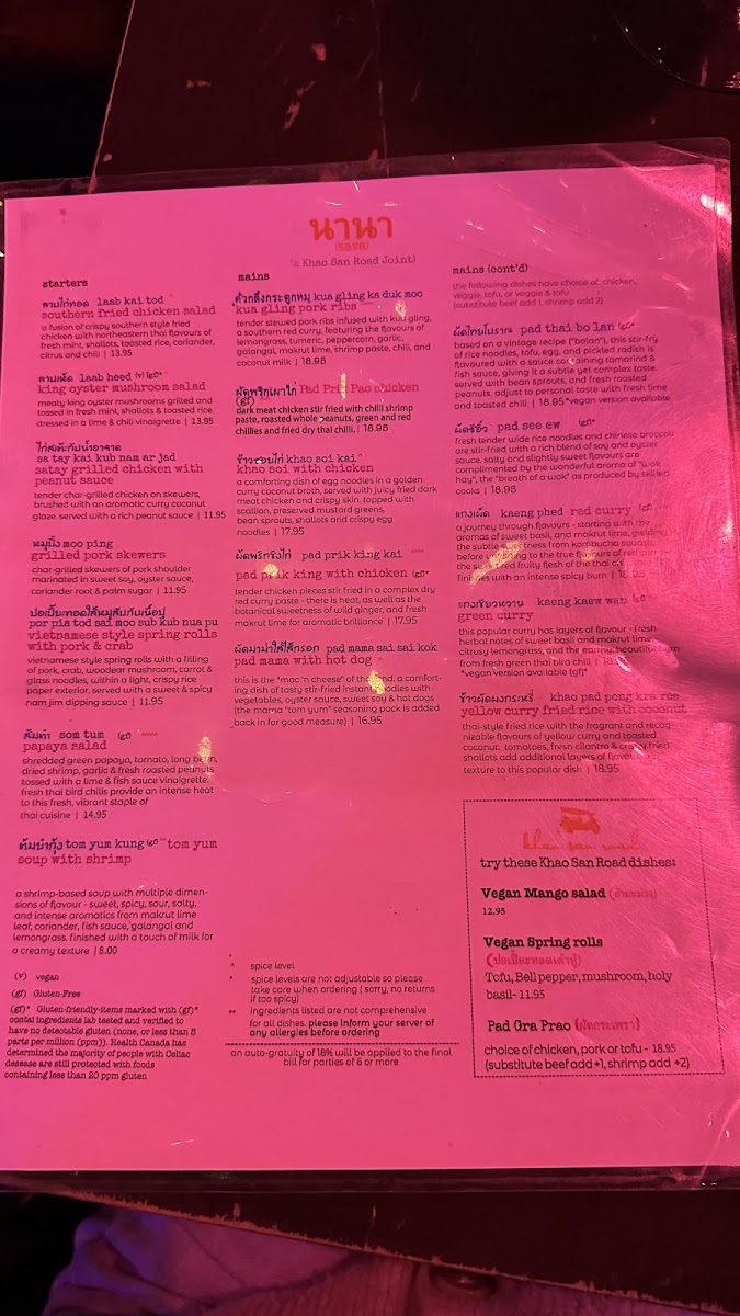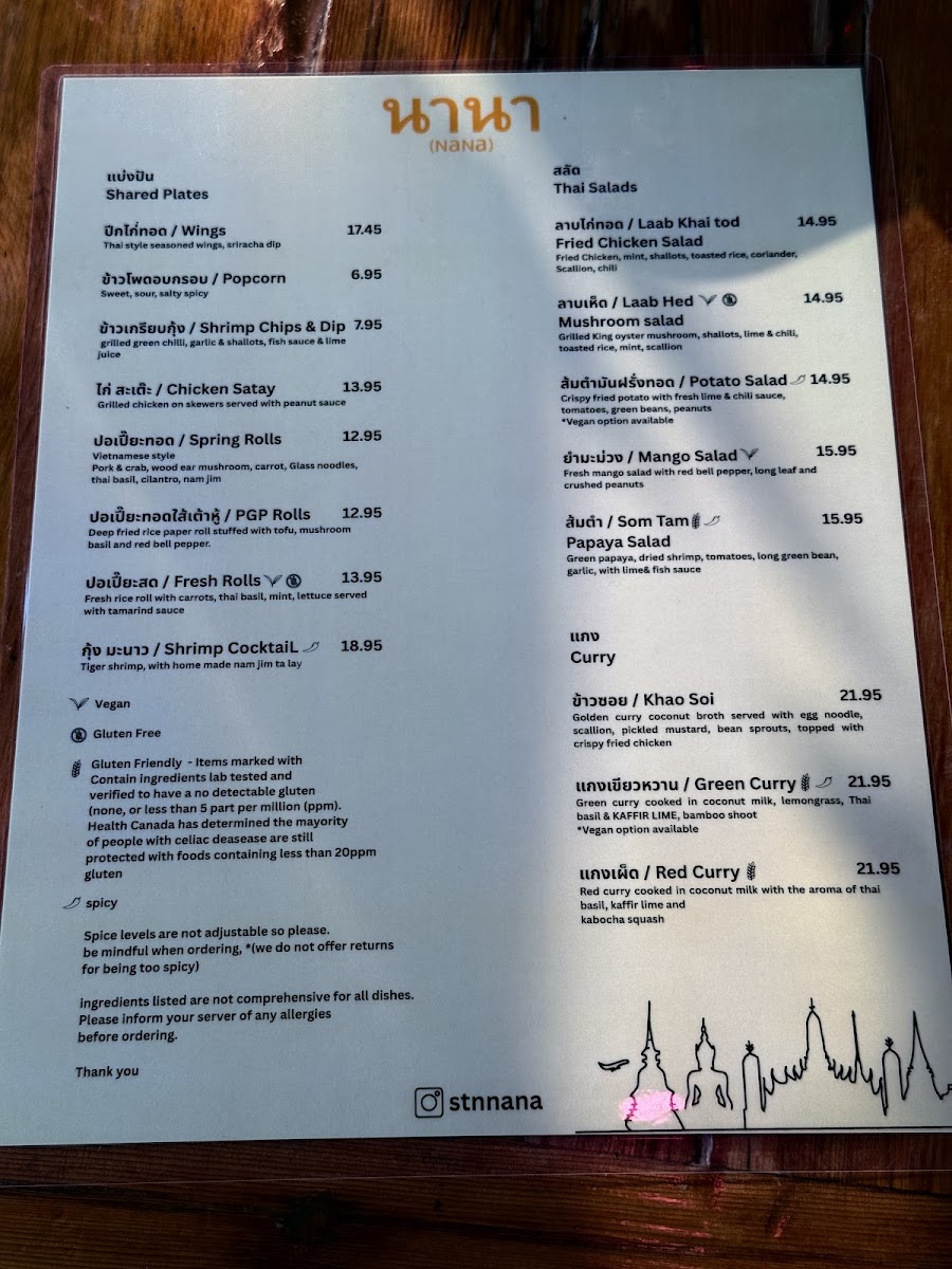 Welcome to Nana, a delightful Thai restaurant nestled in the heart of Toronto at 785 Queen St W. Known for its cozy atmosphere and friendly service, Nana captivates guests with a menu rich in authentic flavors.